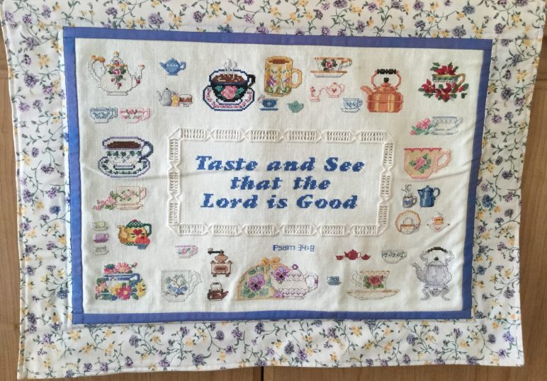 [There will a place of honour on the east side of the corridor outside the dining room that will be perfect for this stitching. Many snacks were consumed in front of this Psalm Verse. J]